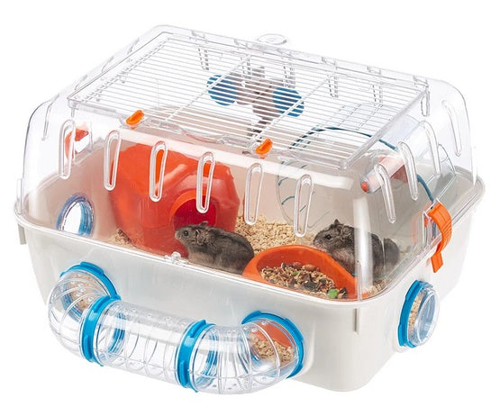 • Dołączone wyposażenie klatki: domek, kołoworotek, tunel, miska