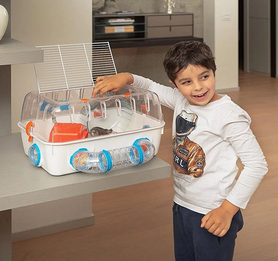 Combi 1 to klatka dla chomika, która jest wykonana z tworzywa i częściowo z prętów, aby zapewnić odpowiednią cyrkulację powietrza. Combi ma na wyposażeniu: miskę, domek, kołowrotek, tunele.