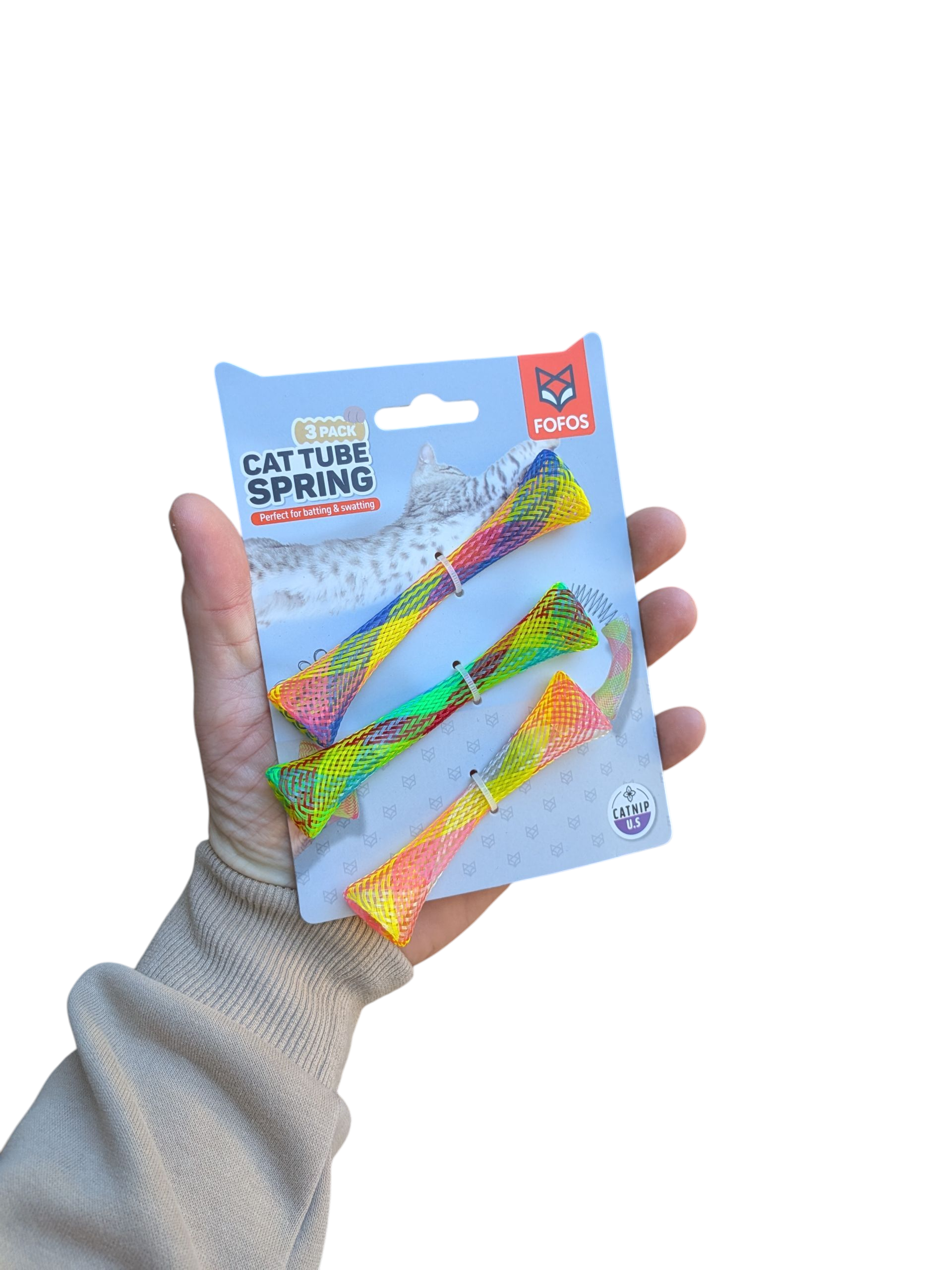 Fofos Spring Tube (3 Stück) – Drei flexible, farbige Röhrchen, die in alle Richtungen springen – unwiderstehlich für verspielte Katzen!