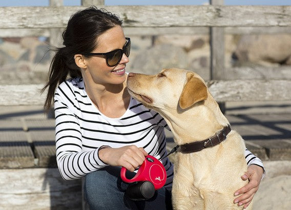Wszystkie smycze Flexi są wysokiej jakości. Mechanizm zwijania działa szybko i sprawnie. Uchwyt jest zaprojektowany z myślą o wygodzie. Wbudowany mechanizm nagłego zatrzymywania psa jest bardzo prosty w użyciu - wystarczy wcisnąć guziczek.
