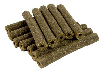 Die I Am Chicken Sticks Round Sticks (50 Stück) sind leckere Hundesnacks, die die Zahnpflege unterstützen. Die Sticks sind hart und haben einen hohlen Kern. Durch das Kauen reiben die Sticks an den Zähnen und helfen so, Plaque und Zahnstein zu reduzieren.