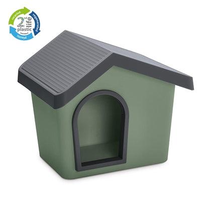 Die Imac Dog House Zeus 50 Second Life Recycled Green 53X46X47,5 cm ist eine Kunststoff-Hundehütte aus umweltfreundlichem, recyceltem Kunststoff für kleine Hunde und Katzen.