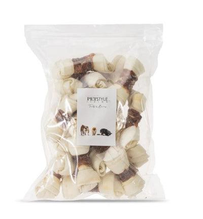 Petstyle Living Knotenknochen Weiß mit Ente 6,5-7,5 cm 25 Stück