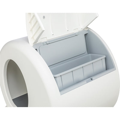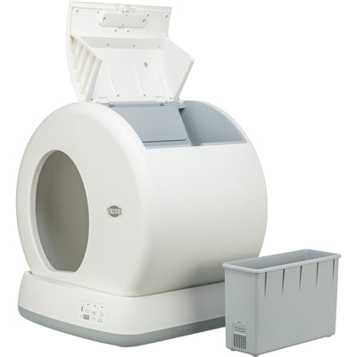 Die selbstreinigende Katzentoilette Kunststoff Weiß 53 x 52 x 55,5 cm von Trixie ist eine praktische Katzentoilette, die durch Rotation die Katzentoilette automatisch sauber hält. Diese automatische, selbstreinigende Katzentoilette ist die Lösung für jeden Katzenbesitzer! Die Trommel dreht sich nach Gebrauch automatisch. Der Reinigungsvorgang stoppt automatisch, wenn Ihre Katze kommt. Verwenden Sie in dieser Katzentoilette klumpende Katzenstreu. Durch die Rotation fallen feste Partikel wie Kot und Katzenstreuklumpen mit Urin in den Abfallbehälter. Der Abfallbehälter kann mit oder ohne Müllbeutel verwendet werden. Die Bedienung und Reinigung der Trommel ist sehr einfach.