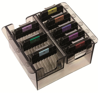 Dieses 8er Metall-Snap-On-Kamm-Set von Wahl ist für Haarschneidemaschinen mit Snap-On-System und Klingen der Größe 10 geeignet. Das Set enthält folgende Größen: